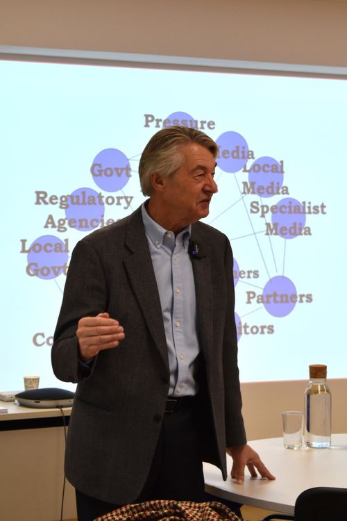 Polaznici prve generacije EMBA in Strategic Communication programa imali su priliku slušati cjelodnevno predavanje uglednog istraživača i konzultanta s 50 godina iskustva u području odnosa s javnošću, javnih poslova te korporativnih komunikacija, autora nekoliko knjiga te brojnih znanstvenih članaka - dr. Jon White, s Henley Business School, University of Reading.