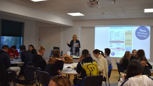 Studenti prve godine prijediplomskog studija Komunikacijski menadžment sudjelovali su na radionici financijske pismenosti u sklopu Škole pametnih financija Erste banke. Riječ je o projektu društveno odgovornog poslovanja koji banka provodi s ciljem pružanja lako razumljivih, mjerljivih i korisnih znanja i vještina primjenjivih u raznim životnim, odnosno financijskim situacijama kroz koje prolazimo. Do sada je održano skoro 800 radionica, na kojima je sudjelovalo više od 13.000 polaznika svih dobi.